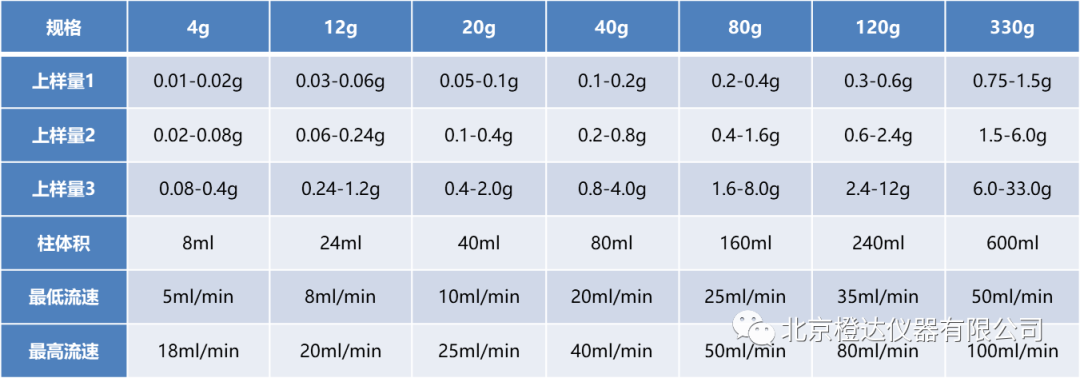 中压制备柱规格与上样量的关系